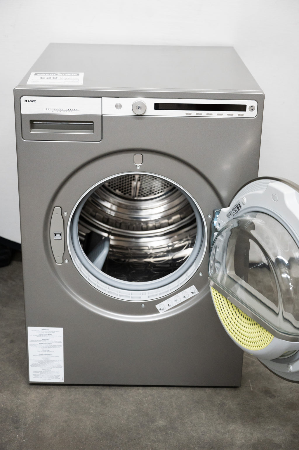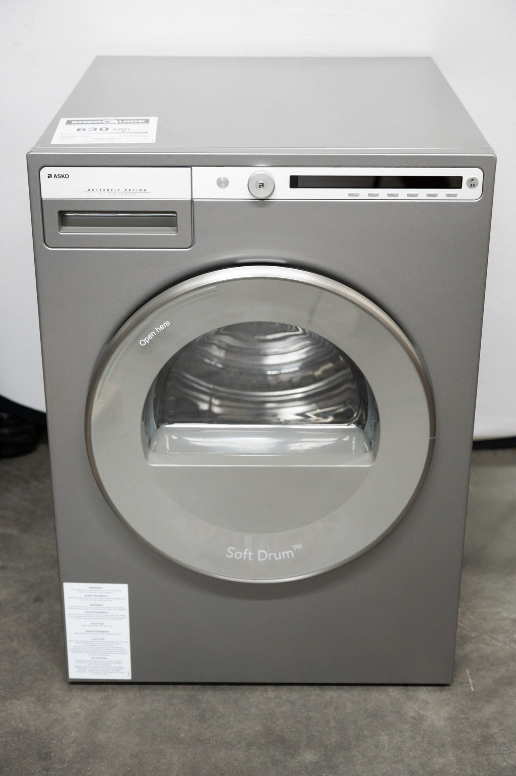 ASKO Logic Series T411VDT 24 Inch Electric Dryer with 5.1 Cu. Ft. Capacity, Butterfly™ Drying System, Soft Drum™ Technology, LCD Display, Interior Light, Line Concept™, 13 Dry Programs, Sensi Dry™, Auto Synthetic, Airing Option, and Anti-Crease: Titanium