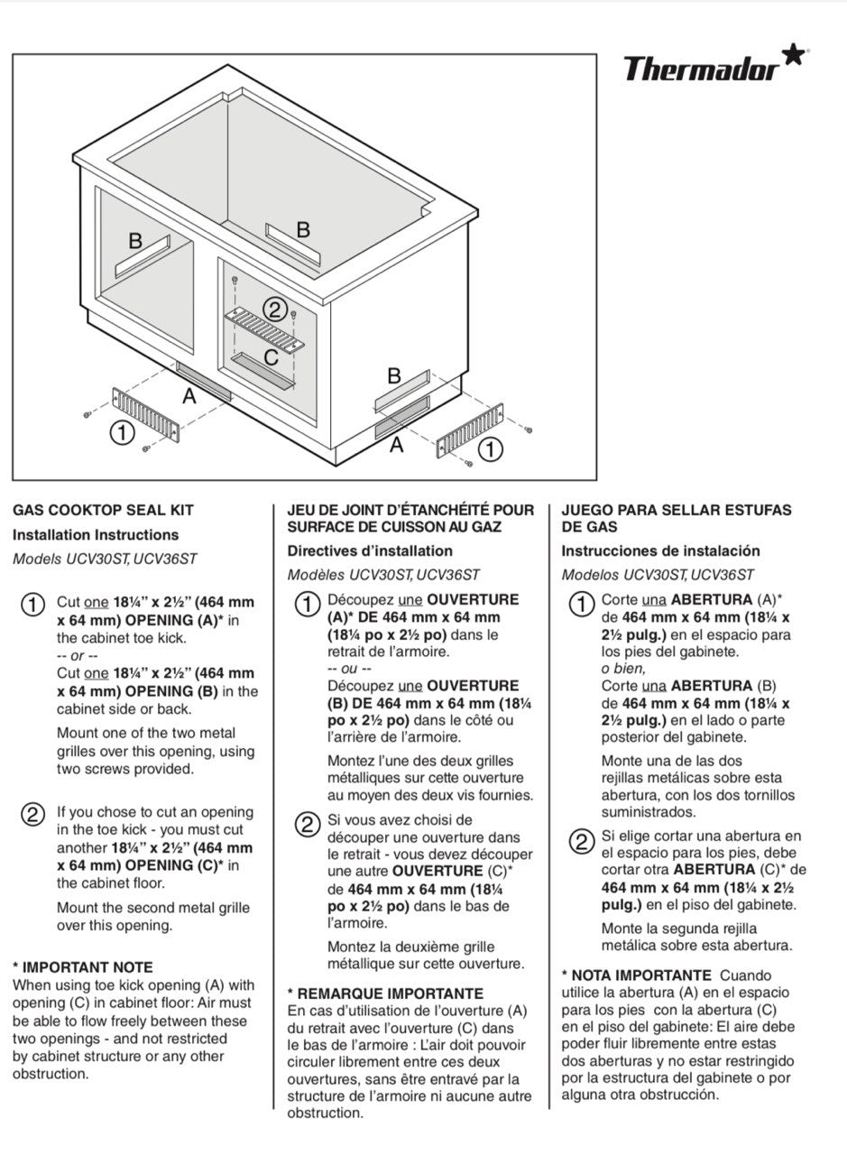 Thermador UCV36ST 36" Gas Cooktop Seal Kit for Downdraft